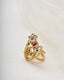 A breathtaking masterpiece that exudes elegance and sophistication. Crafted in lustrous golden color, this exquisite ring features a striking pink,green and white Kundans that sparkle with every movement. A perfect blend of tradition and luxury, this ring is a statement piece that elevates any ensemble, making it an essential addition to your fine jewelry collection.