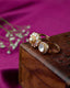 A breathtaking masterpiece that exudes elegance and sophistication. Crafted in lustrous golden color, this exquisite ring features a striking pink,green and white Kundans that sparkle with every movement. A perfect blend of tradition and luxury, this ring is a statement piece that elevates any ensemble, making it an essential addition...
